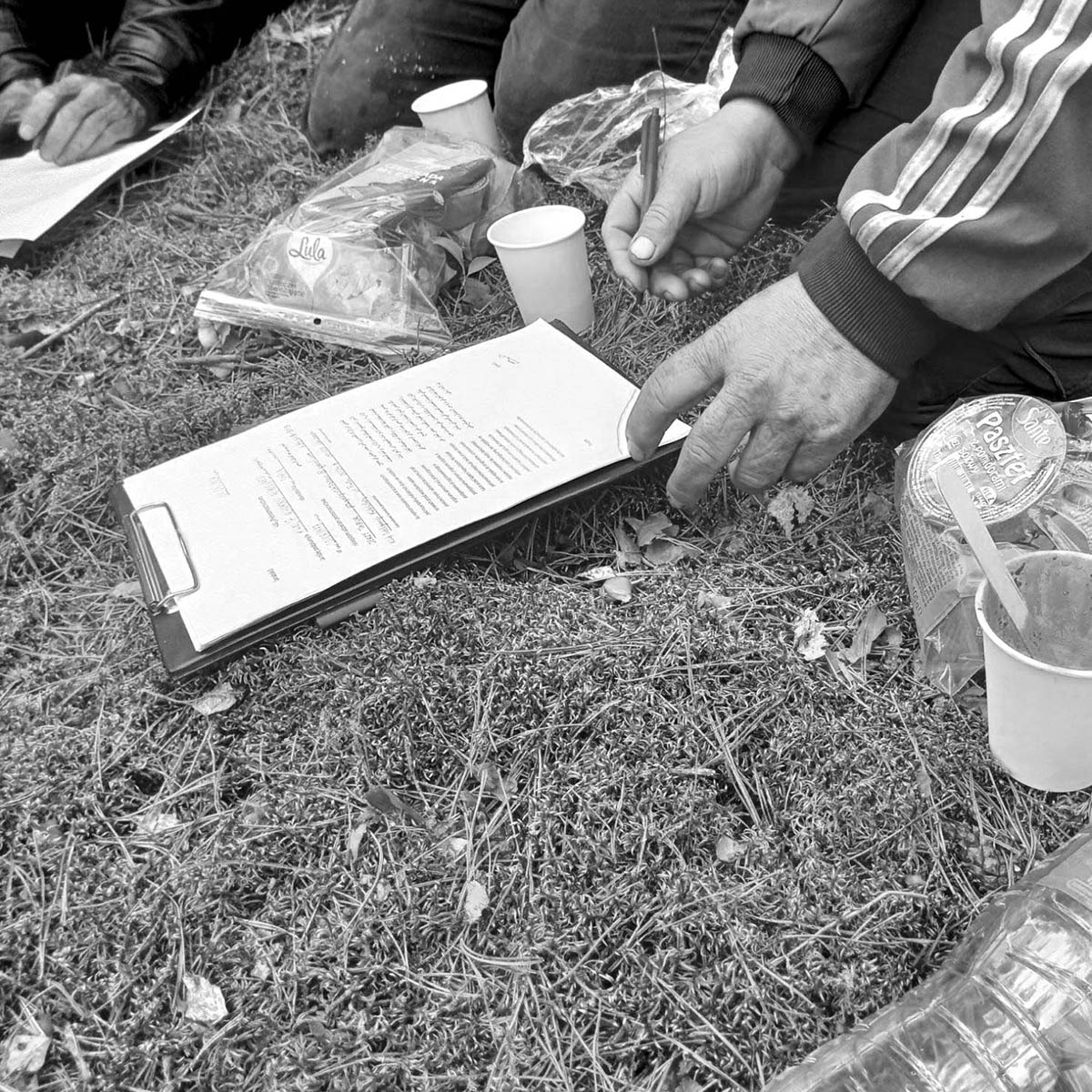 La forêt de Bialowieza n’est pas que cet endroit magnifique prisé des touristes, ou ce lieu à la faune et à la végétation foisonnante, sanctuaire des biologistes. C’est aussi, pour les personnes exilées, cet espace de frontière hostile et dangereux où il faut simultanément se cacher et fuir, dormir en étant sur ses gardes, retrouver son chemin et éviter les militaires ou les marais. S’organiser pour aller «en forêt», se préparer pour aller «en forêt», «être en forêt», «revenir de forêt», etc., deviendra bientôt tout ce à partir de quoi nous organiserons notre quotidien. Ce qui imposera un mode opératoire particulier, une certaine hygiène de vie, une logistique et une préparation journalière. Ce sont ces deux mots - nous le découvrirons vite - qui rythment la vie de la base, épuisent les corps et les esprits, monopolisent l’attention et orientent les discussions.