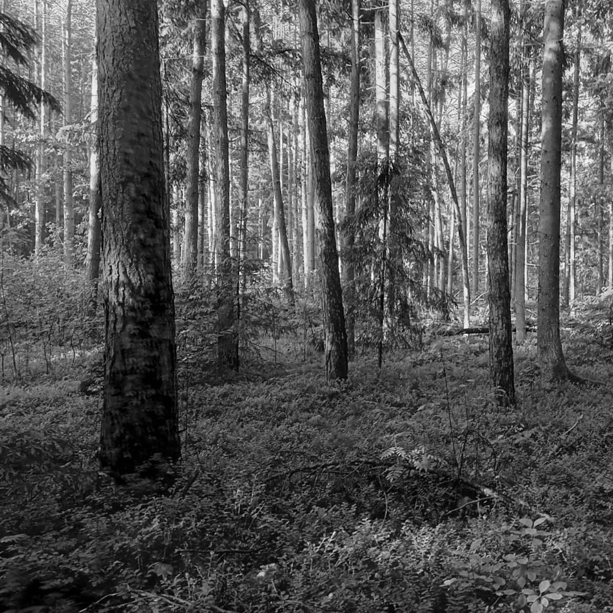 Une fois prêt.es, nous nous faisons déposer en voiture au plus proche du point GPS et commençons notre marche à travers cette forêt primaire. Il n’y a pas de sentier, il fait chaud et nos sacs sont très lourds. Dès les premiers pas, nous voyons les difficultés qui nous attendent, nous percevons l’hostilité de cette forêt pour qui manque d’eau, de nourriture, d’habits secs. La forêt n’est pas homogène, mais constituée de zones plus ou moins denses, plus ou moins humides et marécageuses. Il y a partout des bois morts à terre qu’il faut enjamber, des buissons infranchissables, des conifères serrés, des ronces. Intuitivement, nous essayons d’avancer par les zones peu densément boisées - les rares où il est possible de deviner le soleil pour s’orienter - mais K. nous retient. S’il y a peu d’arbres debout, nous explique-t-il, c’est soit un marécage, soit une zone avec beaucoup d’arbres morts au sol. Dans les 2 cas, ce sera très compliqué de se déplacer et Il faut éviter ces parties. Il faut alors sans cesse contourner, se baisser, revenir sur ses pas, tâter le terrain, escalader les troncs, être concentré sur son équilibre. Les chances de pouvoir sortir de la forêt sans GPS sont infimes. Beaucoup s’y perdent. Et pour parfaire cet environnement hostile et inhospitalier quand on y est sans équipement adapté, il est infesté de tiques et de moustiques.
