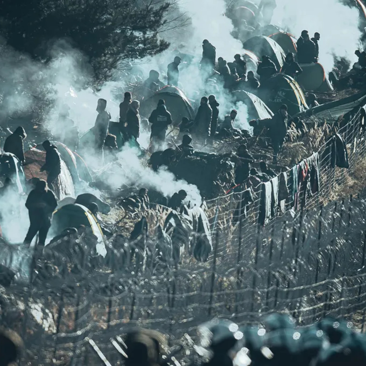 En 2023, nous avons rencontré des camarades polonais.es qui nous ont parlé de la situation à la frontière entre la Pologne et la Biélorussie et du drame des personnes exilé.e.s qui tentent le passage pour l’Union européenne. Nous nous sommes souvenu.es qu’en novembre 2021, les médias français diffusèrent les images de milliers d’exilé.e.s, dont de nombreuses familles, attendant dans le froid et la boue à la frontière biélorusse dans des camps de fortune en face du poste frontière polonais de Kuznica, pris en tenaille entre des militaires surarmés et des lignes de barbelés concertinas. Cet épisode fût massivement médiatisé et les images diffusées véhiculèrent et alimentèrent l’idée d’une horde de migrants massée aux portes de l’Europe, faisant pression pour y rentrer. La presse s’est contentée de ces images spectaculaires. Et depuis Kuznica ? Quasiment plus rien, alors que la situation des exilé.es ne cessera d’empirer.
